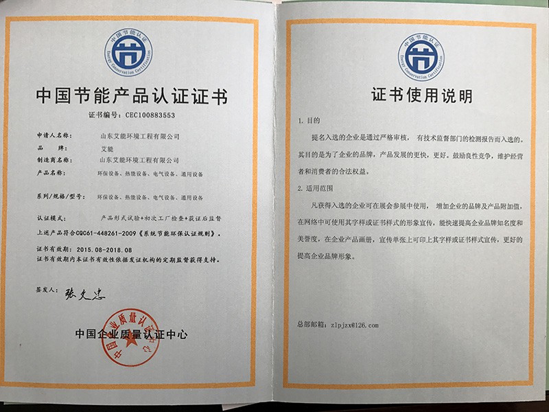節能產品認證證書